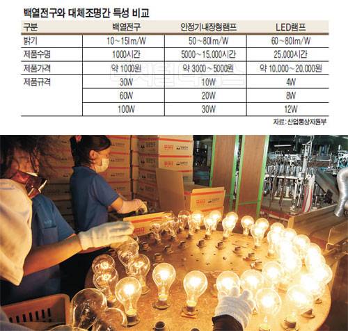 이에 따라 전기에너지의 95%를 열로 낭비하는 대표적 저효율 조명기기인 백열전구는 국내 시장에서 빠르게 사라질 전망이다. 1879년 발명왕 토머스 에디슨과 영국의 조셉 윌슨 스완이 발명해 1887년 경북궁에 최초로 도입된 이후 127년만이다.