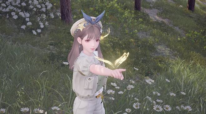 필드 탐험이 질리면 언리얼 엔진5로 구현한 아름다운 자연 환경 속에서 예쁜 옷을 입고 사진을 찍으며 시간을 보냈다. 모모 카메라의 레벨이 오를 수록 다양한 필터 및 보정 기능이 해금된다. 제한된 카메라 기능으로도 본판이 예쁘니 그림같은 사진이 나왔다.