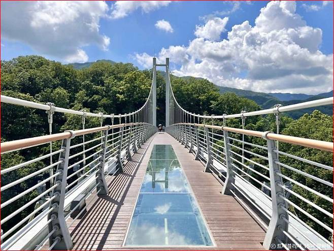 유네스코 세계지질공원으로 지정된 한탄강 협곡을 발 아래에 두고 걷는 경험,다리 중간에 설치된 투명 유리 바닥을 밟는 순간, 마치 공중을 걷는 듯한 아찔함이 함께합니다.