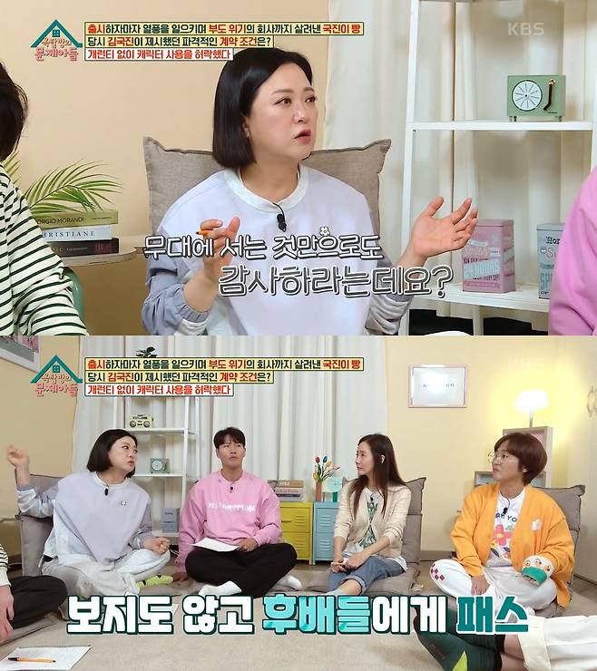 행사비는 받는 것이냐고 물어본 김국진은 경험을 쌓으러 온 것이기 때문에 별도의 페이가 없다는 후배들의 답변에 " 그런게 어딨느냐?"라며 자신이 받은 행사비 봉투를 들여다보지도 않고 나눠주었다고 한다.