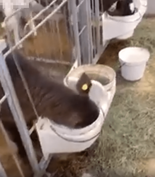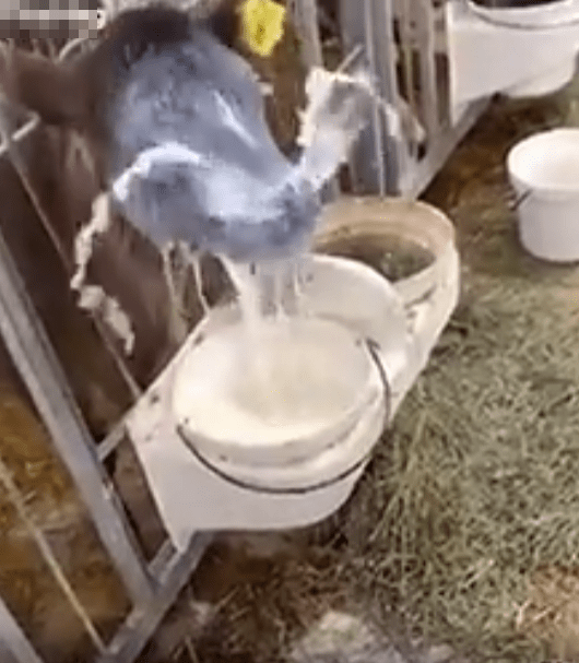 그리고 더 놀라운 장면. 송아지는 아무 일도 없었다는 듯 다시 고개를 돌려 우유통에 얼굴을 쑥 넣습니다. 아주 자연스럽고 익숙한 동작으로, 마치 방금 있었던 건 "그냥 기분 정리용 숨 내쉬기" 정도였다는 듯이요. 그렇게 송아지는 다시 꿀꺽꿀꺽 우유를 마시기 시작합니다.