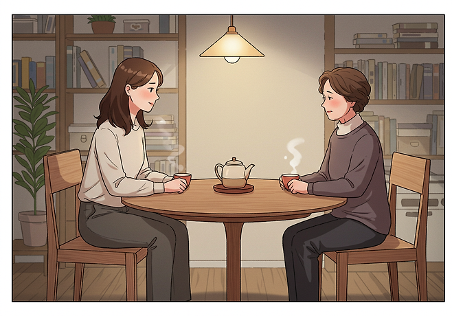 불편한 주제가 나왔을 때는 “저는 조금 다르게 해보고 있는데요, 어머니 말씀도 참고할게요”처럼 상대를 존중하면서도 자신의 방식을 지켜낼 수 있는 말투를 익히는 게 중요합니다.