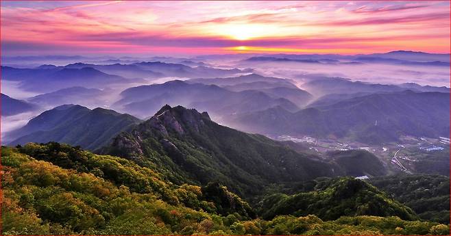 아홉 봉우리가 뚜렷한 기암괴석의 산