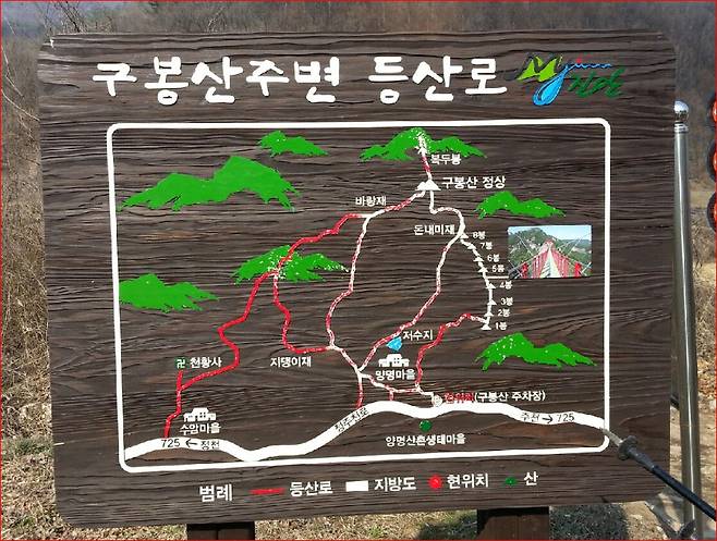 구봉산 정상에 오르면 눈앞에 펼쳐지는 풍경이 압도적입니다. 서쪽으로는 북두봉과 운장산, 남쪽으로는 옥녀봉과 부귀산, 북쪽으로는 명덕봉·명도봉이 시야에 들어옵니다. 날씨가 맑은 날에는 멀리 덕유산과 지리산까지 한눈에 조망할 수 있어, 산행의 피로가 단숨에 날아가는 순간을 맞이하게 됩니다.
