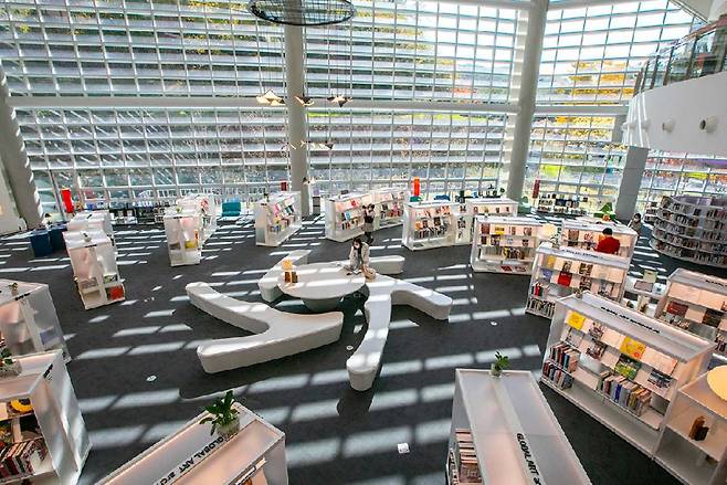 건축과 디자인 분야에서 큰 주목을 받는 의정부 랜드마크입니다. 도서관과 미술관의 기능을 결합한 국내 최초의 공공도서관으로, 웅장하고 독특한 외관과 개방형 구조가 인상적입니다. 전 층을 관통하는 거대한 아트리움과 높은 층고는 시원하고 예술적인 공간감을 선사하며, 마치 갤러리 속을 걷는 듯한 기분을 느끼게 합니다.