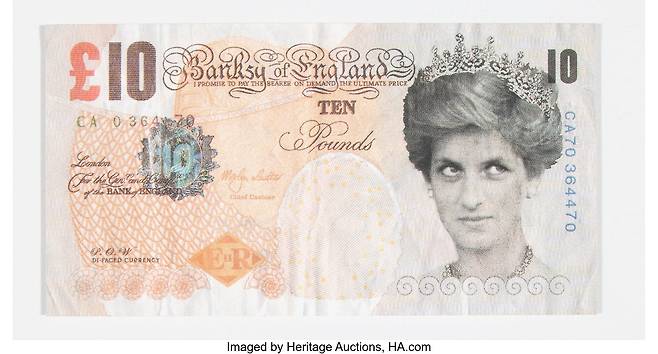 그를 단순히 '거리의 장난꾸러기'라고 부르기에는 꽤 큰 사고도 여러 번 쳤는데요, 대표적으로 2004년 8월, Banksy는 영국 10파운드 달러에 있던 여왕의 사진을 다이애나 비로 바꾸고 텍스트 "Bank of England"를 "Banksy of England"로 변경하여 대량으로 발행하였습니다. 지폐 복제는 불법인데 말입니다.