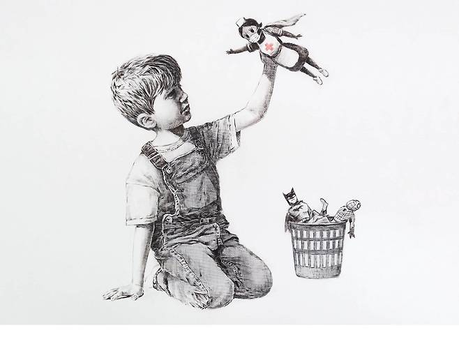 무기 거래 반대 캠페인 및 구제 기금 마련을 위해 여러 작품을 기증하기도 하고, 팔레스타인을 지원하는 다수의 작품과 프로젝트를 제작하기도 했습니다. 2020년 코로나19 팬데믹 기간에는 국립보건원 직원들의 수고를 위해 아래와 같은 그림을 선물하기도 했습니다. 뱅크시의 자선활동은 지금도 여전히 이어지고 있다고 추측됩니다. 아무도 모르게요.