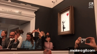 뱅크시를 아마 한국에 가장 알렸던 사건은 바로 이 사건일 텐데요, 바로 낙찰된 본인의 그림을 액자에 내장되어 있던 파쇄기를 원격으로 작동시켜 작품을 반절 가량 파쇄해버린 사건 말이죠. 더 놀라운 점은 파쇄 이후 낙찰가가 20배 정도 올랐다는 것입니다.