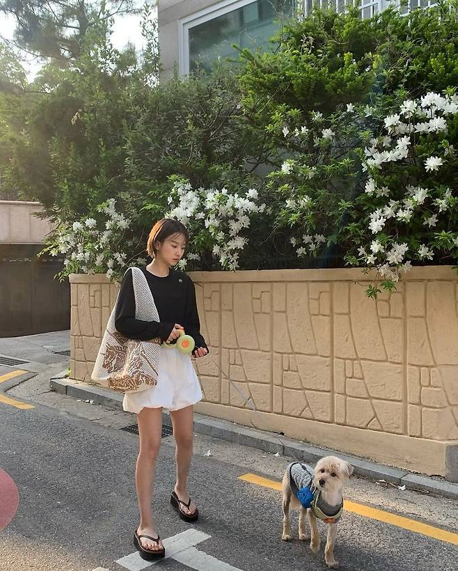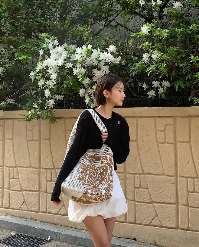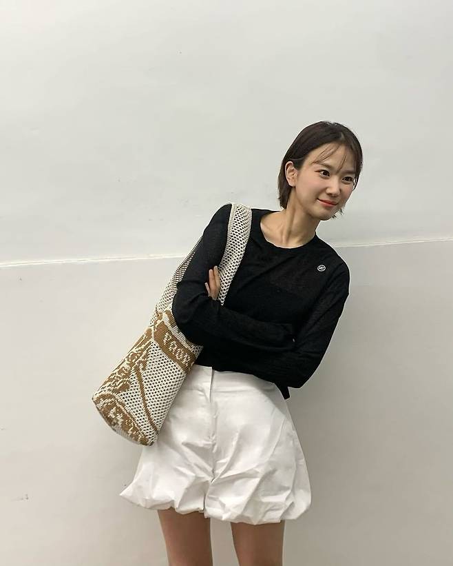 장희령의 이번 룩은 소품 하나만으로도 스타일에 확실한 포인트를 줄 수 있다는 것을 보여준다. 블랙 니트와 화이트 쇼츠라는 비교적 베이식한 조합에 니트 백을 더함으로써 트렌디한 감각을 살렸고, 동시에 과하지 않은 자연스러움을 유지했다. 여기에 미니멀한 액세서리와 내추럴한 단발 헤어스타일까지 어우러져, 도심 속 편안한 하루를 보내기에 딱 어울리는 스타일을 완성했다.