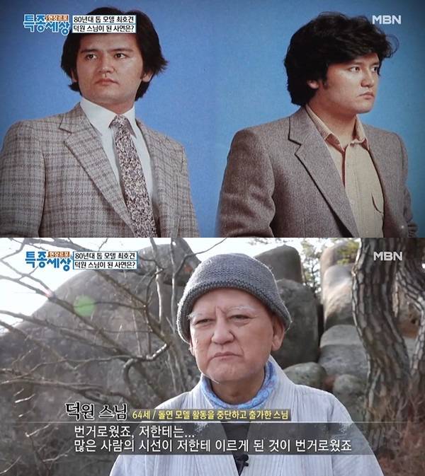 그는 모델로 전성기를 달리던 서른 살에 출가해 덕원스님으로 산 지 30년이 넘었다고 말했습니다. 그는 "출가 전 기억이 또렷하게 남아있다"라며 "차화연, 황신혜, 임예진과 CF도 찍고 촬영도 했었다. 지금 생각하면 전생의 기억 같다"라고 밝힌 그는 "만물과 함께 사는 지금이 더 보람있다"라고 말했습니다.