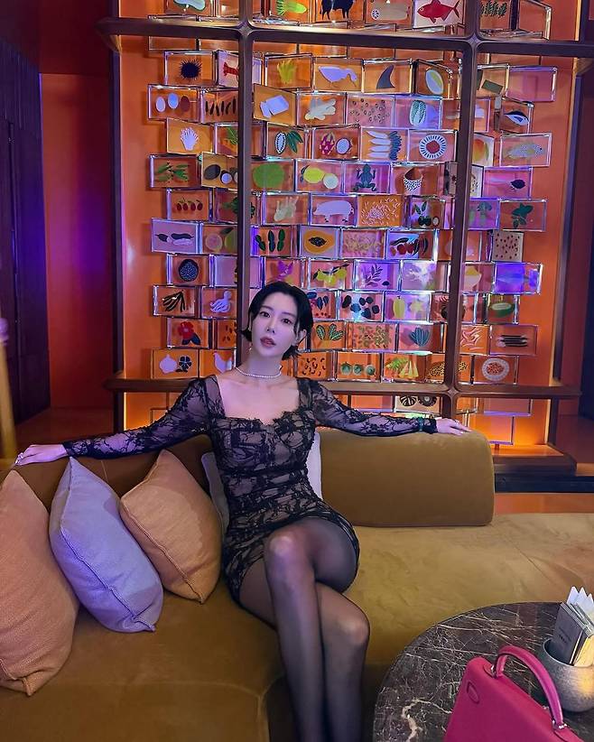 장소 또한 그녀의 스타일링을 더욱 돋보이게 만든다. 우드톤의 벽 앞에서 담긴 사진은 한층 더 세련된 분위기를 자아내고, 감각적인 조명 연출은 그녀의 실루엣을 더욱 강조한다. 또 다른 컷에서는 컬러풀한 아트월 앞에서 여유롭게 소파에 기대어 있는 모습도 포착됐다.