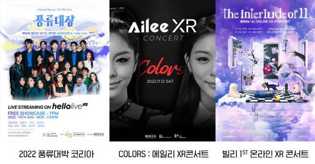 한국콘텐츠진흥원은 중소기획사들이 KOCCA뮤직스튜디오를 활용한 다양한 공연을 기획· 제작할 수 있도록 올해 100억원의 예산을 들여 50여개 이상 온라인 공연과 음악·영상·팬미팅 콘텐츠 제작을 지원했다. ‘2022 풍류대박 코리아’, ‘COLORS: 에일리 XR 콘서트’, ‘빌리 1st 온라인 XR 콘서트’ 등의 지원사업 공연이 많은 시청자들에게 호응을 얻었다.