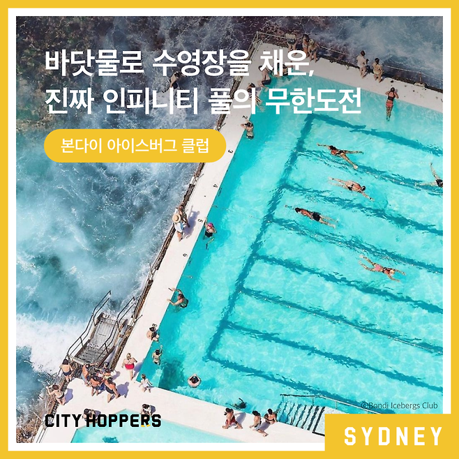 본다이 비치는 호주를 넘어 세계적으로 유명한 바닷가예요. 초승달 모양의 모래사장은 1년 내내 서퍼들이 가득하고, 해변 주변에는 여유롭고 아름다운 카페, 바, 부티크 숍이 즐비하죠. 그리고 여기를 더 유명하게 만들어준 것이 있어요. 인스타그램에서 컬트적 인기를 누리고 있는 유서 깊은 바다 수영장, ‘본다이 아이스버그 클럽(BIC)’이에요.