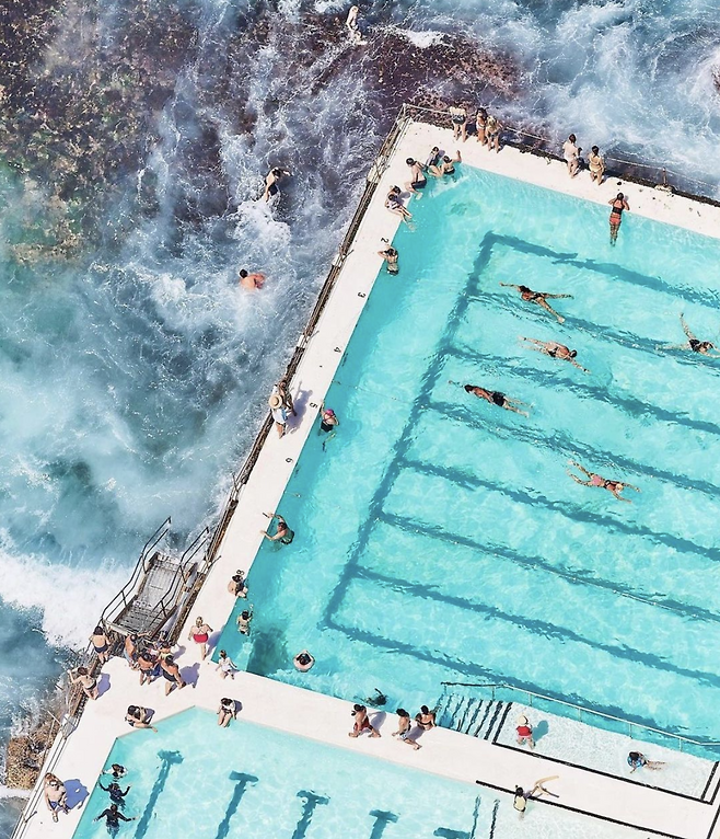 그런데 수영장이면 수영장이지, 왜 ‘바다’가 붙냐고요? 본다이 해변의 바닷물이 차올라 자연스럽게 수영장의 물을 채워주기 때문이에요. 이 수영장을 본다이 배스라고 부르는데, 바다와 이어지는 절경 덕에 보테가 베네타, 아디다스, 넷플릭스 같은 기업의 마케팅 창구로 활용되기도 하고, 패션 런웨이, 뷰티 행사, 브랜드 런칭쇼의 무대가 되기도 해요.