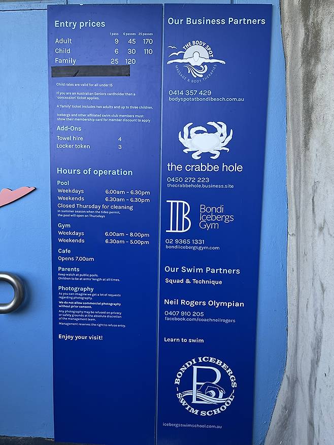 소셜 회원은 1년에 25호주달러(약 2만원)의 입회비를 내고, 일일권을 끊는 사람과 동일하게 방문 시마다 9호주달러(어린이의 경우 6호주달러)에 수영장을 이용할 수 있어요. 혜택은 클럽 내 모든 식음료 메뉴가 10% 할인된다는 점이에요. 목요일 밤마다 열리는 회원 전용 행사에도 참여할 수 있죠.