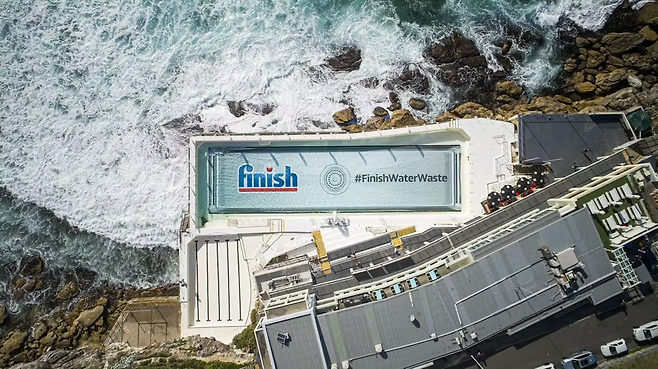 식기세척기 브랜드 피니시도 물 절약 습관을 장려하기 위해 BIC와 손을 잡았어요. 본다이 배스의 물을 모두 비운 뒤, 사라진 물을 가뭄으로 허덕이는 농촌 지역사회에 기부한다는 캠페인을 벌였죠. 호주는 매해 산불을 피해갈 수 없을 정도로 건조한 나라지만 1인당 연간 평균 물 사용량은 10만리터로, 세계에서 세 번째로 큰 담수 소비국이에요. 식기 세척기를 통해서는 연간 200억리터의 물을 사용하죠. 피니시는 물을 아껴쓰자는 메시지를 전달하기 위해 바다 수영장과 브랜드 파워를 활용한 거예요.