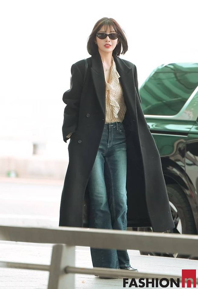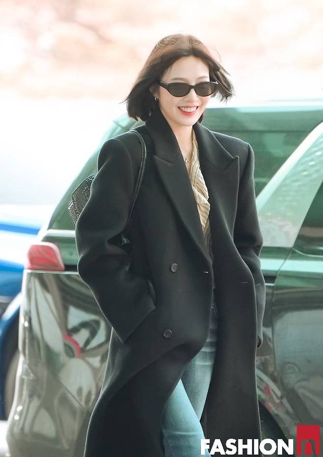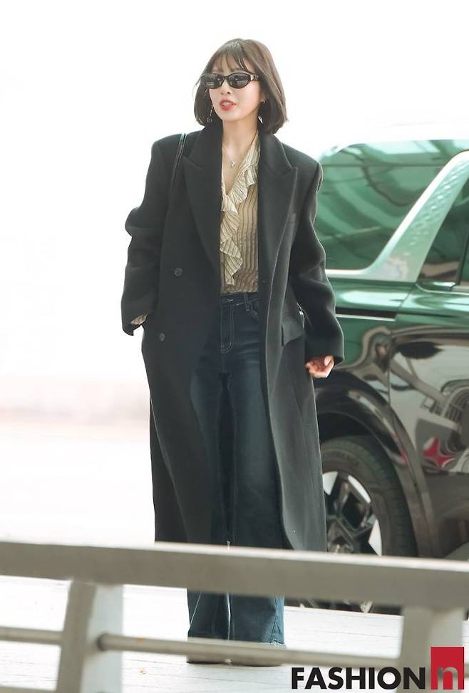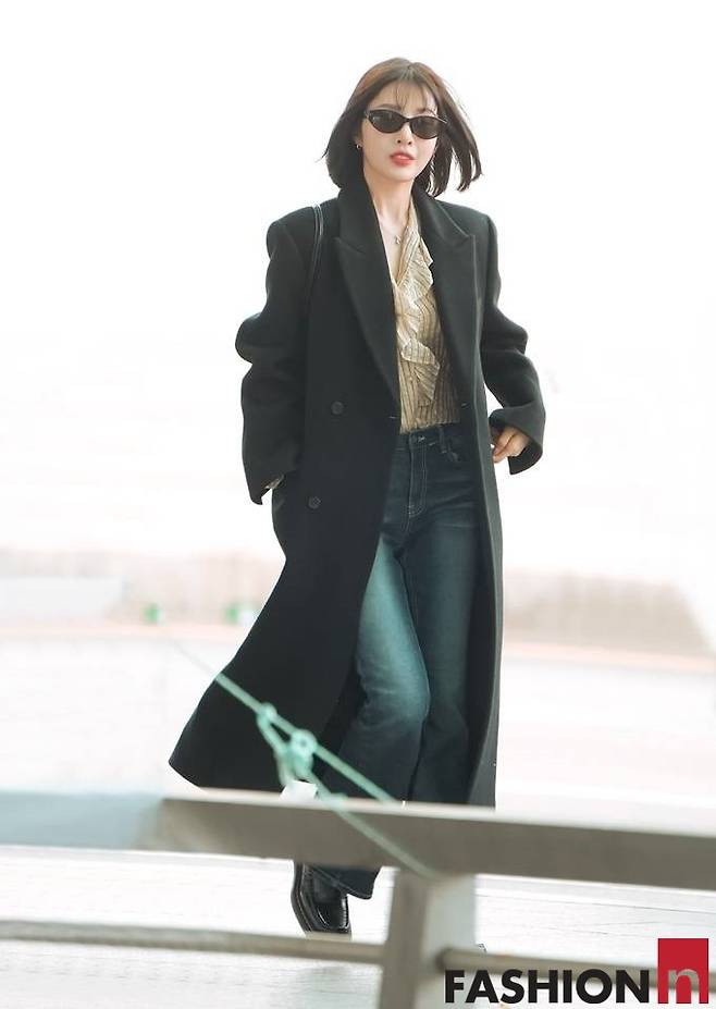 그룹 레드벨벳 조이가 칼바람에 맞선 맥시 코트룩으로 스타일리시한 공항 패션을 연출했다.