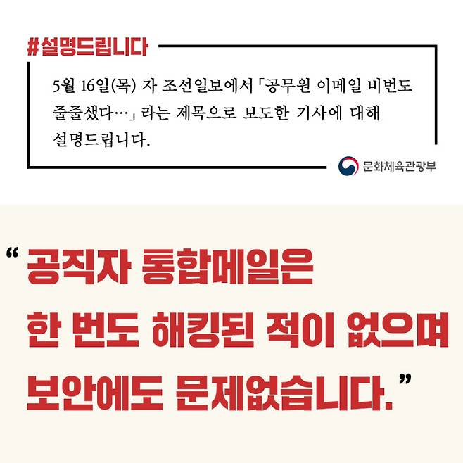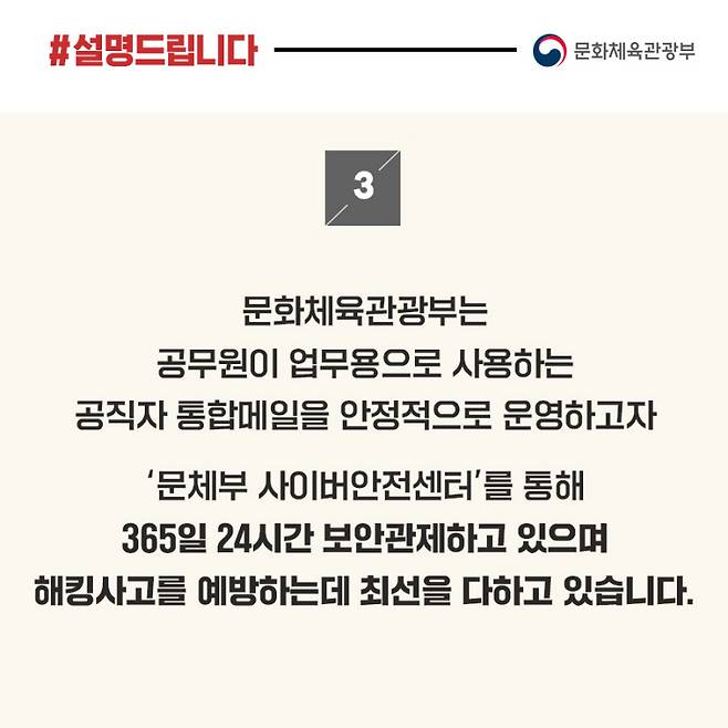 [사실은 이렇습니다] 문체부 “공직자 통합메일 해킹된 적 없어…보안 최고 수준”