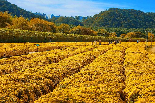 가을이면 국화와 코스모스가 활짝 피어 산책길을 화사하게 장식하며, 겨울에는 수목이 만들어내는 차분한 풍경이 마음을 평온하게 해줍니다.