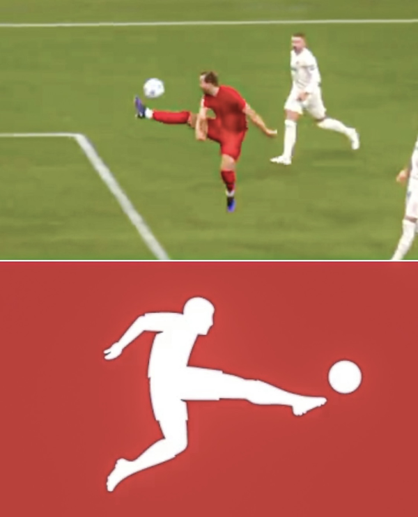 분데스리가 역사를 쓴 골 장면에서 분데스리가 로고를 완벽히 재현한 케인이었다.