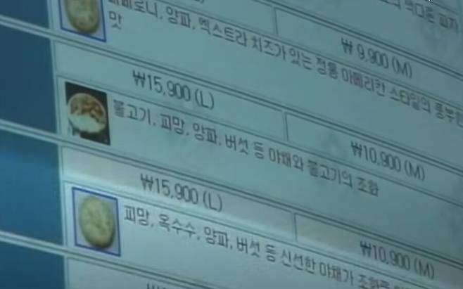 한 참가자가 피자로 점심을 해결하기 위해 인터넷 메뉴판을 보는 중!