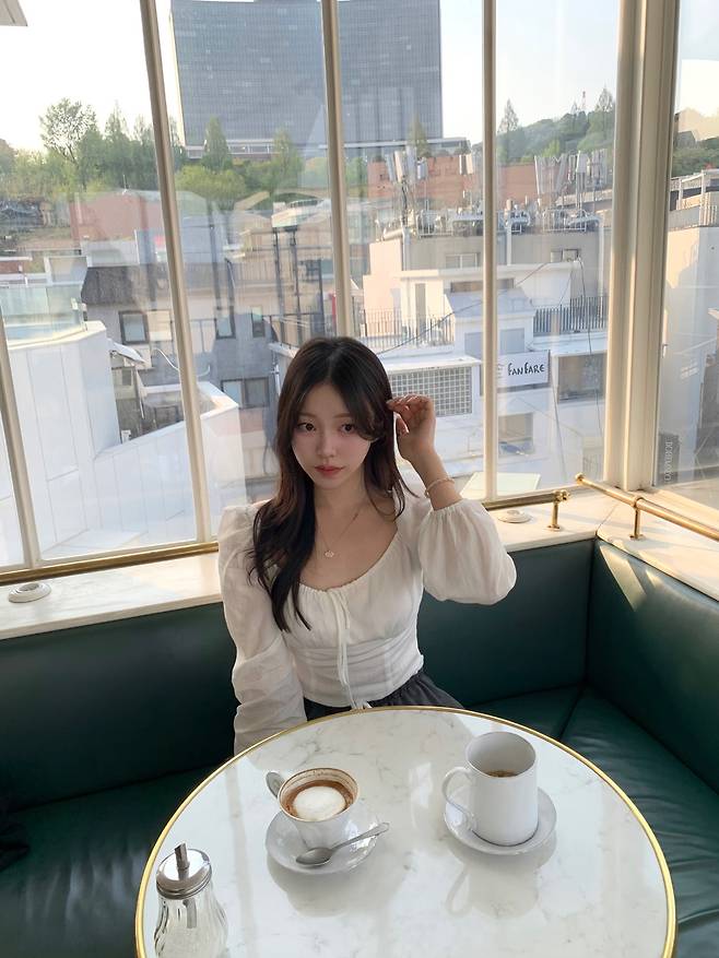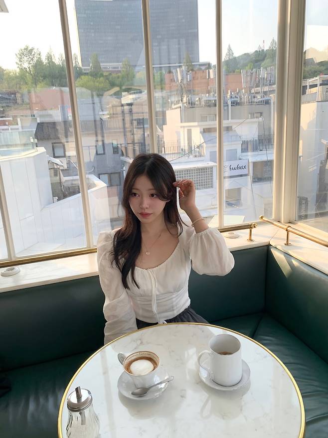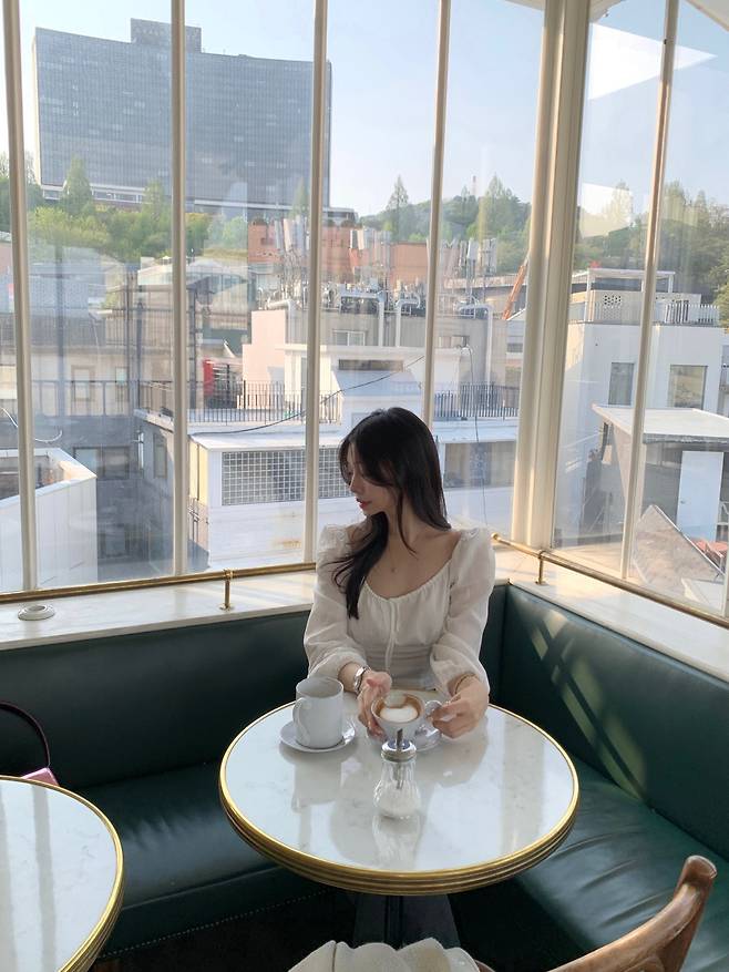 카페에서 여유로운 시간을 보내기 딱 좋은, 나른한 무드가 돋보이는 스타일링.