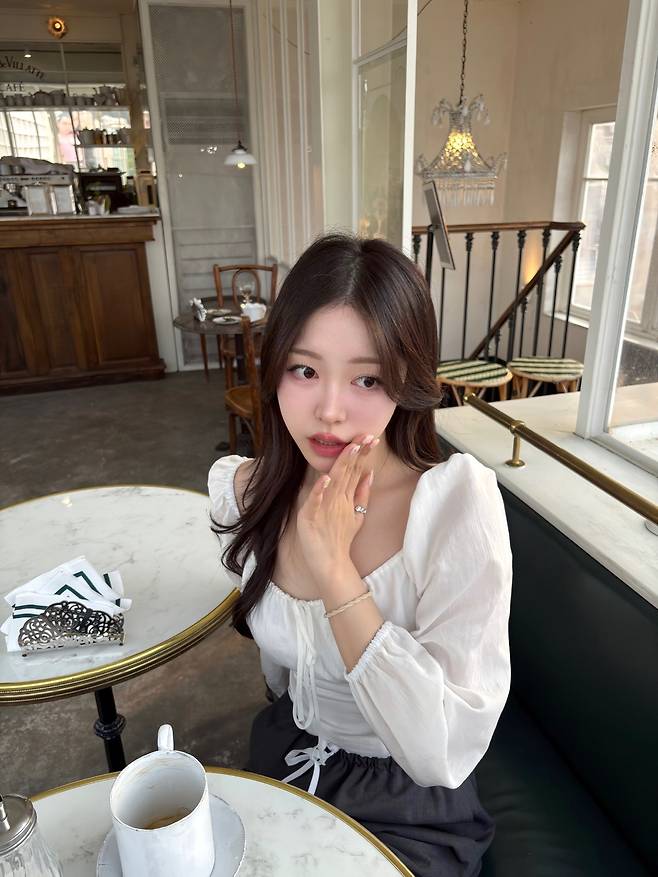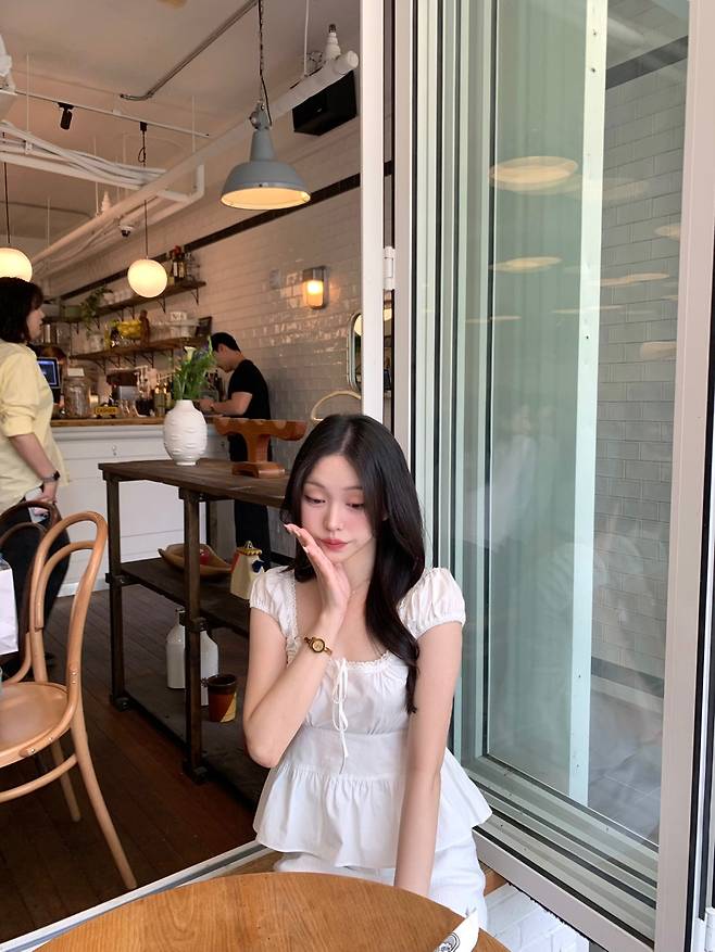 가볍게 꾸민 듯한 스타일이 카페 데이트룩으로 제격.