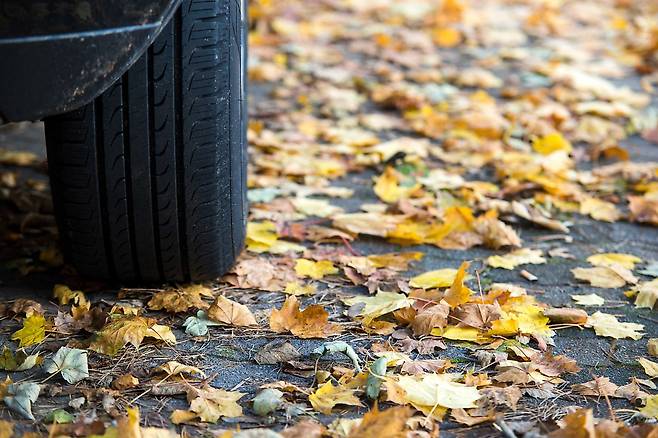 타이어의 트레드가 닳거나 수명이 다한 경우에는 기본적으로 노면이 조금만 미끄러워도 차량이 미끄러지거나 타이어의 파손의 가능성이 있어 위험한데요, 가을철에 추가적으로 타이어를 점검해야 하는 이유는 가을철에는 낙엽이 떨어지게 되며 낙엽을 밟으며 운전하는 경우도 있는데, 만약 낙엽이 살짝 젖어있고 낙엽이 많이 깔려 있는 경우에는 브레이크를 밟아도 차량이 미끄러질 위험이 있습니다.