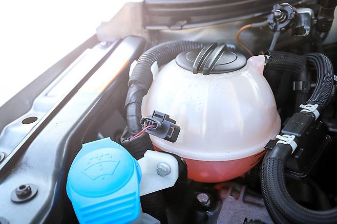 또한 LOW라고 적혀있는 부분과 HIGH라고 적혀있는 부분을 확인하여, 냉각수가 들어 있는 양은 제대로 있는지 확인해 보아야 합니다.