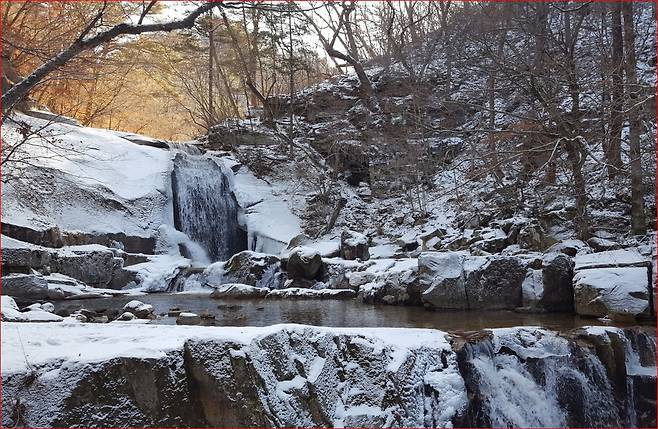 특히 휴양림 안쪽에 자리한 마당바위와 이단폭포는 겨울에 전혀 다른 분위기를 보여줍니다. 눈이 소복이 쌓인 바위 위로 흐르는 물, 얼음과 물이 공존하는 폭포 풍경은 화려하지 않지만 깊은 인상을 남깁니다. 그래서, 겨울 사진을 좋아하는 이들에게도 방태산은 은근히 알려진 장소입니다.