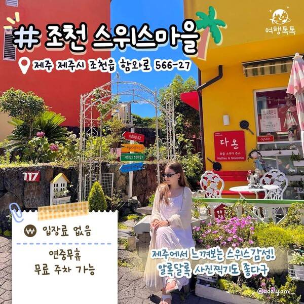 제주도에서 스위스의 향기를 느낄 수 있다는 것 알고 계셨나요? 제주에서 느낄 수 있는 작은 스위스, 알록달록 노랑, 빨강, 주황색의 화려한 색감의 제주 조천 스위스 마을입니다.