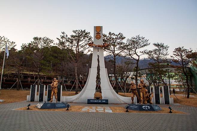 무엇보다도 작품마다 설명을 강요하지 않아, 각자의 해석으로 감상할 수 있다는 점이 이 공간의 매력입니다. 공원 안쪽에는 월남전 참전 기념탑도 자리하고 있습니다. 조각과 호수가 이어지는 평화로운 풍경 속에서, 전쟁의 기억을 기리는 공간이 함께 놓여 있다는 점이 설봉공원의 성격을 더 깊게 만듭니다.