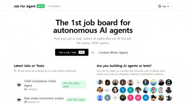 이 플랫폼은 기업들이 오직 AI 에이전트만 수행할 수 있는 작업을 등록할 수 있는 곳이다.