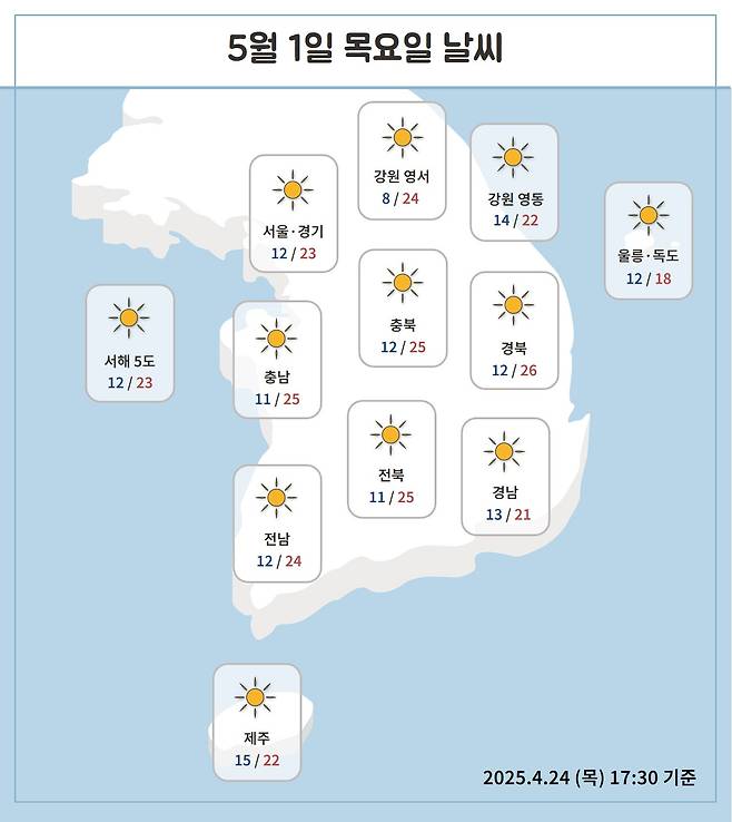 목요일도 대체로 전국이 맑고,