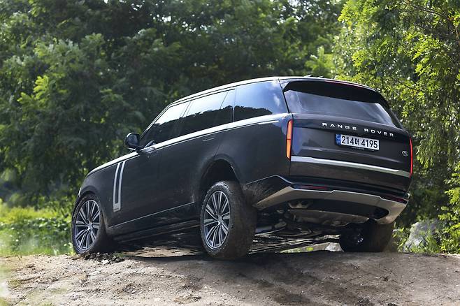 이러한 변화는 오프로드에서도 도움을 줬다. 차 한 대 간신히 지나갈 수 있는 좁은 커브길이 대표적이었다. 레인지로버와 비슷한 체격의 후륜조향 없는 SUV는, 후진‧전진 몇 차례 반복해서 통과해야 할 코스를 레인지로버는 ‘한 방’에 클리어 한다. 덕분에 육중한 ‘덩치’를 모는 게 전혀 부담스럽지 않았다. 차폭 가늠이 어렵다면, 카메라의 도움을 받아도 좋다. 13.1인치 중앙 디스플레이에 오프로드 주행화면을 띄우면, 좌우 휠 주변 화면을 볼 수 있다. 악명 높은 코엑스 주차장 등을 내려갈 때 활용해도 좋다.
