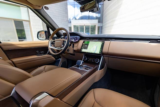 묵직한 도어를 여니, 커다란 사이드스텝이 ‘스르륵’ 우아하게 내려온다. 계단처럼 밟고 실내로 입장. 외모에서 느낀 심플함이 실내에서도 이어진다. 레인지로버 고유의 인테리어 스타일을 계승하되, 더욱 간결하게 구성했다. 특히 중앙 13.1인치 플로팅 디스플레이는 크기도 시원스럽지만, LG전자가 개발한 제품으로 ‘K-친화적’이다. 해상도가 뛰어날 뿐 아니라 모니터 내 UI가 태블릿PC처럼 친숙하다. 인포테인먼트에 약점이 있었던 과거 랜드로버와 비교하면 ‘환골탈태’다. 티맵 내비게이션도 기본으로 들어갔다.