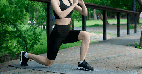 바닥에 서서 준비 자세를 취합니다. 오른쪽 다리를 뒤로 뻗으며 무릎을 90도로 구부려 런지 자세를 만듭니다. 다시 원래 자세로 돌아오면서 오른쪽 무릎을 공중으로 들어줍니다. 이 동작을 반복한 후, 반대편 다리로 진행합니다.
