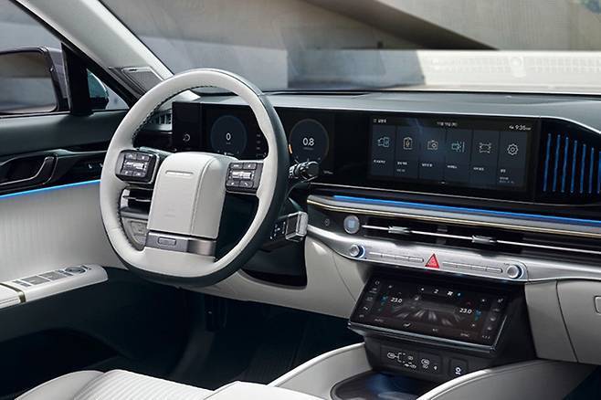 그랜저 하이브리드는 7세대(GN7)로 진화하면서 대형 세단다운 품격을 더욱 살렸다. 전장과 휠베이스를 키워 뒷좌석 공간은 더 넓어졌고, 12.3인치 디지털 클러스터와 인포테인먼트가 통합된 파노라믹 디스플레이는 고급 브랜드 못지않은 실내 감성을 제공한다. 여기에 230마력 하이브리드 시스템은 복합연비 17km/L를 기록, 정숙성과 효율을 동시에 만족시킨다.