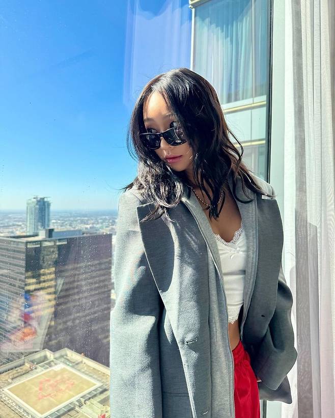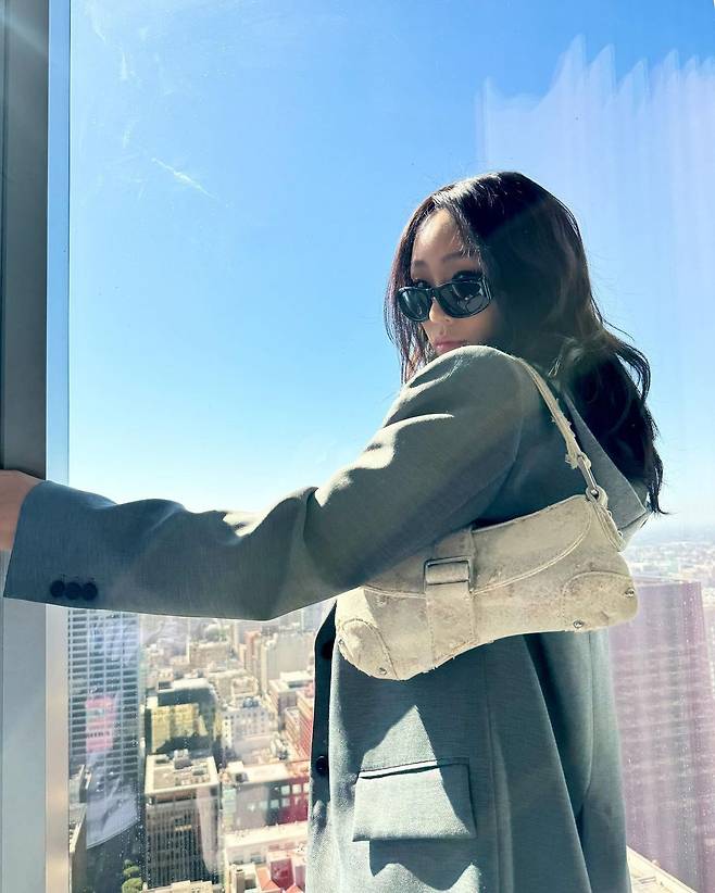 도시뷰를 배경으로 자신감 넘치는 포즈를 취하고 있는 효린!