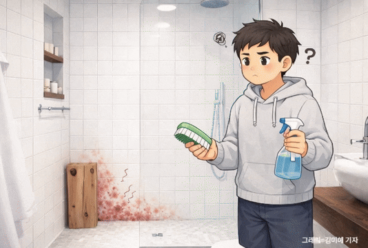 ◆물기와 비누 찌꺼기, 오염의 시작=욕실 오염은 대부분 ‘젖은 상태’에서 시작된다. 물방울이 마르며 남긴 미네랄은 물때가 되고, 비누와 치약 거품은 끈적한 찌꺼기로 굳어 세균이 번식하기 쉬운 환경을 만든다. 여기에 환기까지 부족하면 곰팡이가 빠르게 번식한다.
