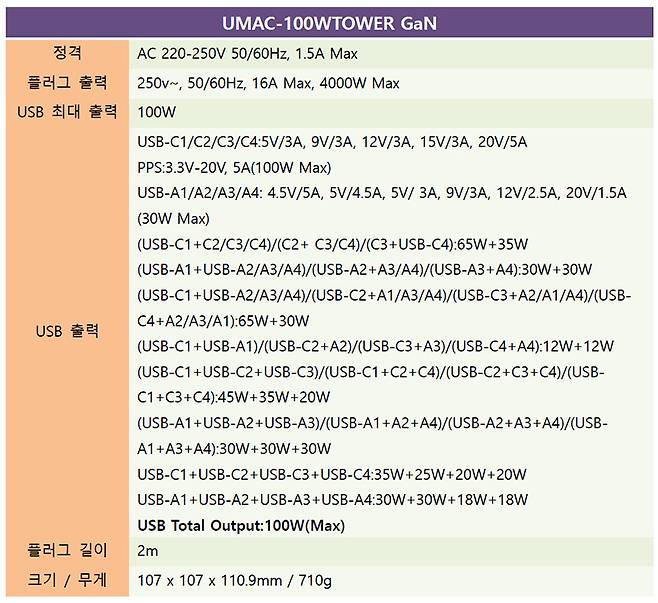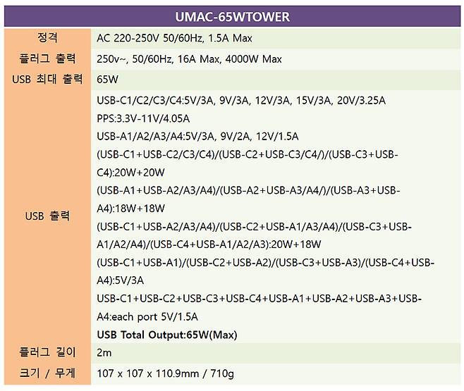 UM2 타워 5구 멀티탭 4000W 8포트 멀티 충전기 UMAC-65W / 100W
