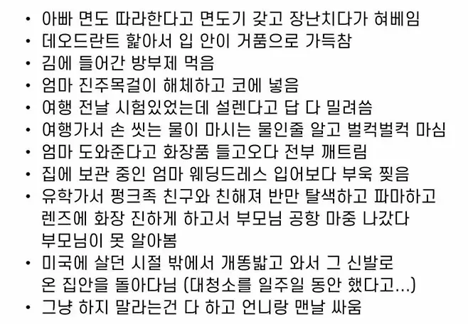 해당 게시글의 내용은 웬디의 팬이 작성한 것으로 보이는 웬디의 어릴 적 일화로 대체로 과도한 호기심과 활달함에서 비롯된 문제였다.