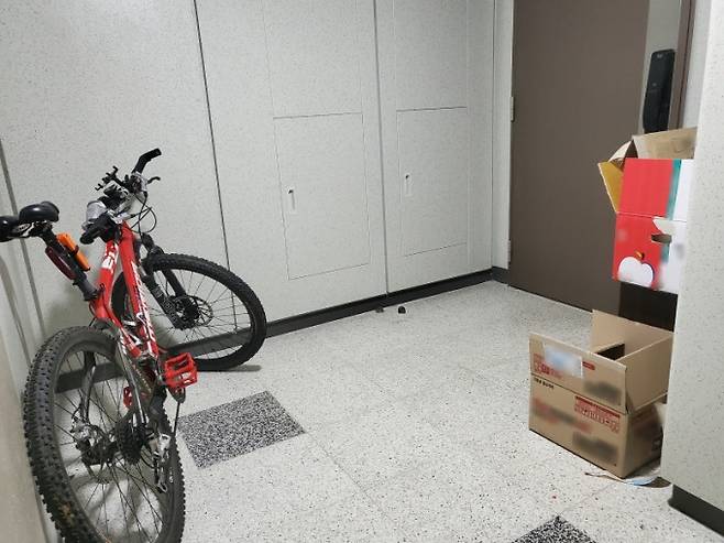 "집 안에 공간이 없어서" 하시는 분들 많지만, 복도 주차는 무조건 금지예요.
