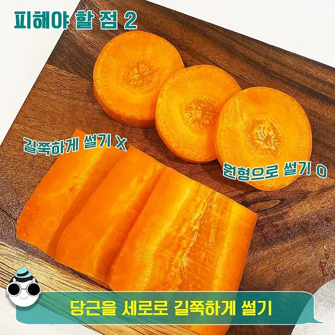 당근은 ‘세로’로 길쭉하게 자르기 보다, 동그랗게 ‘가로’ 모양으로 잘라야 골고루 영양분을 얻을 수 있다는 사실! 알고 계셨나요?