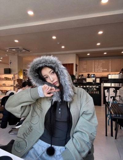 • 퍼 트리밍 디테일: 후드 부분의 퍼가 얼굴을 부드럽게 감싸주어 따뜻하면서도 러블리한 느낌을 더해줍니다.