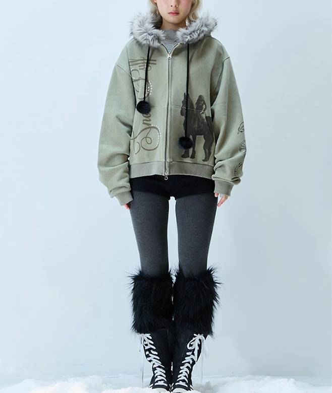 피그먼트 워싱과 퍼 트리밍의 조화로 완성된 빈티지 무드