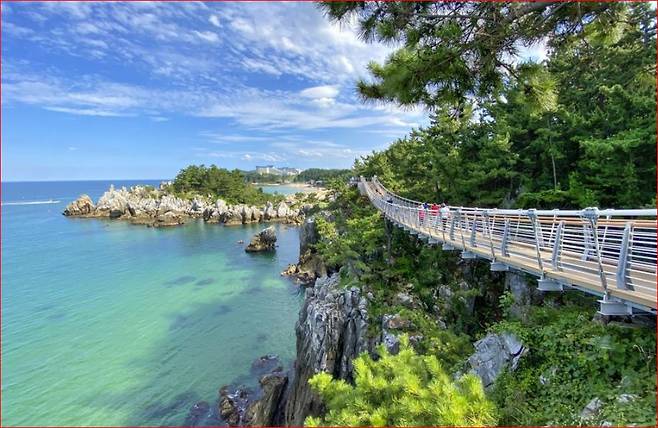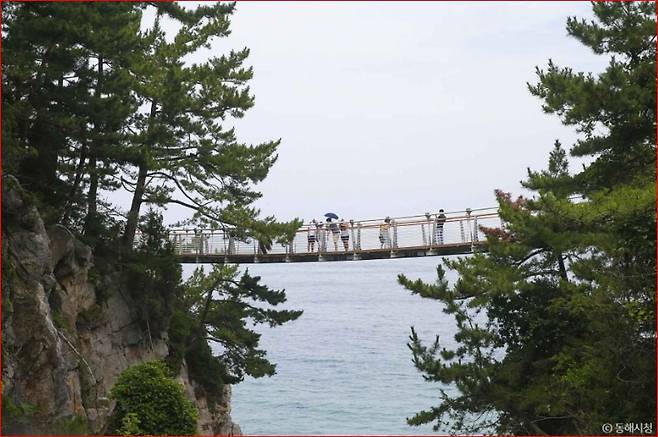 추암해변과 인접한 이 다리는 2019년 6월에 개장했으며 길이 72m로 바다 위를 가로지르며 설치되어 있어 바다 위를 걷는 듯한 스릴과 함께 추암의 해안 절경을 감상할 수 있는 이색 명소입니다.