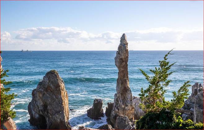 다리 위에서 바라보는 촛대바위, 해변, 갯바위의 풍경은 계절과 날씨에 따라 다른 분위기를 선사합니다.