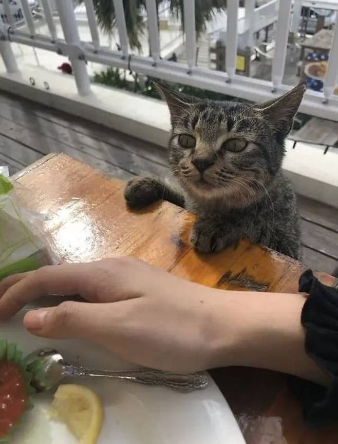 물론 고양이에게 사람이 먹는 음식을 주는 것은 좋지 않지만 이 고양이의 능청스럽고 뻔뻔한 모습은 오키나와 여행에 잊을 수 없는 추억을 선물했는데요.