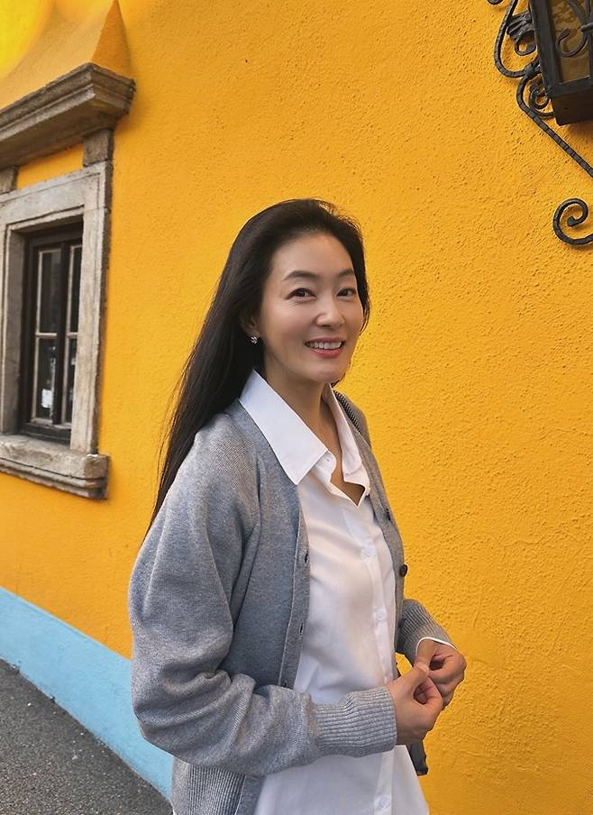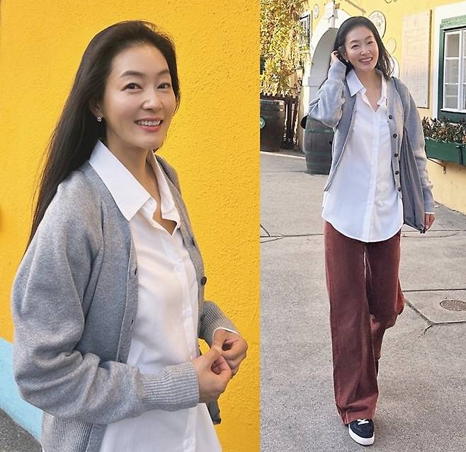 공개한 사진에서 박진희는 버건디 팬츠와 화이트 셔츠에 그레이 니트 카디건을 걸친 간편한 산책룩으로 캐주얼하면서도 스타일리시한 모습을 드러냈다.